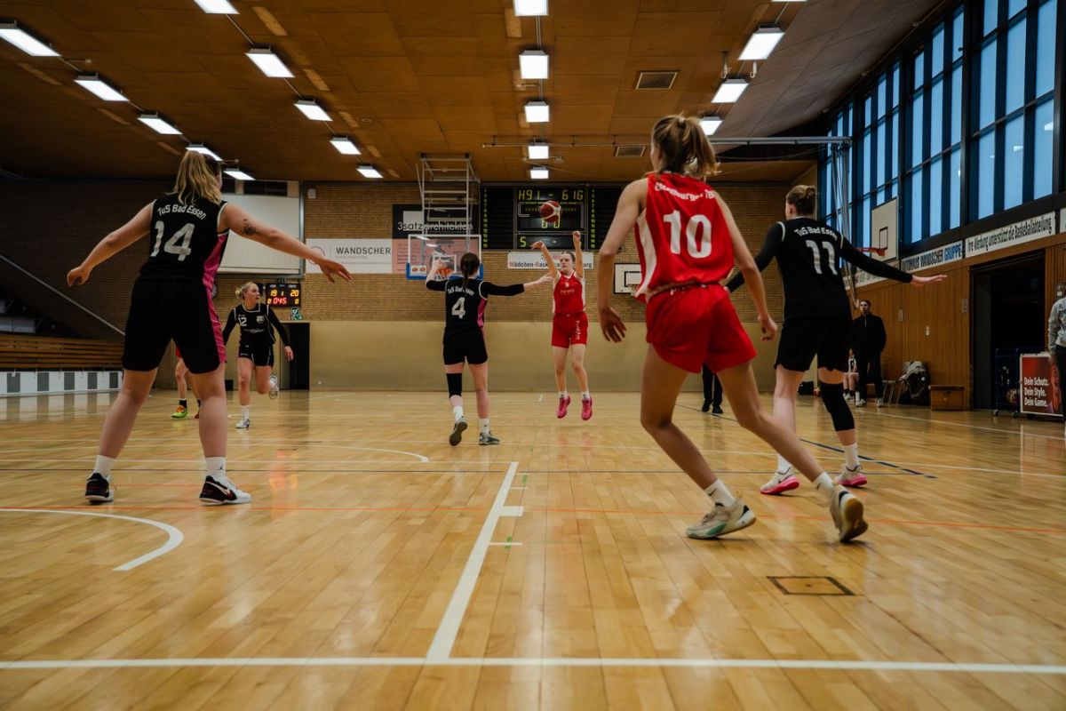 Gespannt waren die Zuschauer in der Haarenuferhalle, wie sich die 2. Damen nach dem Umbruch zum Jahreswechel präsentieren würden. Erst zweimal hatten die zahlreichen jungen Mädchen mit der neuen Trainerin, Helena Schwarz, zusammen trainiert. Milla und Sofia gaben ihr Debut. Und dabei sollten sie gleich in der Oberliga antreten. Eine echte Hammeraufgabe. Milla startete mit Lea, Josephine, Lilu und Anna. Und schon ging die Post ab. Die Oldenburger Mädchen setzten die Bad Essener Damen gehörig unter Druck und verleiteten den Gegner immer wieder zu Fehlern oder Ballverlusten. Letztere wurden teilweise als schnelle Konter gleich in Punkte umgemünzt. Im Setplay bewegte man den Ball gekonnt durch die eigenen Reihen und kam immer wieder zu freien Würfen. Das sah richtig gut aus. Lilu Doms präsentierte sich in absoluter Bestform und markierte bis zur 7. Minute bereits 10 Punkte. Das Zwischenergebnis ergab dann auch in der 7. Minute eine verdiente 17:9 Führung. Lilus Auswechselung daraufhin war jedoch eine Zäsur. Vorne gelang erst einmal kein Korb mehr und hinten fehlte der nötige Druck auf das Bad Essener Angriffsspiel. Beim Viertelende war das Spiel gedreht (19:20). Zu Beginn des zweiten Viertels folgte die beste Phase für den OTB. Mit einem 25:4 Lauf eroberten sich die Oldenburgerinnen eine scheinbar komfortable Führung. Vorne glänzten dabei Josephine, die immer wieder gnadenlos zum Korb zog, sowie Anna und Milla. Und wieder brach das Spiel nach 7 Minuten zusammen. Bad Essen erzielte noch 8 Punkte in Folge und beim 40:32 ging man in die Kabine. In der 2. Halbzeit wurden die OTBerinnen immer mehr Opfer ihres hohen Tempos aus der ersten Hälfte. Es entstanden immer Lücken in der Verteidigung und Bad Essen hatte es im Angriff zunehmend leichter. So schmolz der Vorsprung allmählich dahin. Beim 47:48 (28.) wechselte die Führung zum ersten Mal. Josephine eroberte diese mit 3 Punkten zum Viertelende jedoch wieder zurück (50:42). Im vierten Viertel dann zog Bad Essen ganz langsam davon. Der OTB versuchte dagegen zu halten, vergaß dabei das Mannschaftsspiel und verzettelte sich in zu vielen Einzelaktionen. Bad Essen behielt die Nerven, spielte gekonnt zusammen und hatte am Ende den 59:62 Sieg verdient. Insgesamt konnte die neue Trainerin Helli Schwarz mit ihren jungen OTB Mädchen beim ersten Auftritt jedoch zufrieden sein. In der ersten Halbzeit konnte man bereits deutlich ihre Handschrift erkennen. Von dem neu zusammengestellten Team darf man in Zukunft einiges Gutes erwarten.