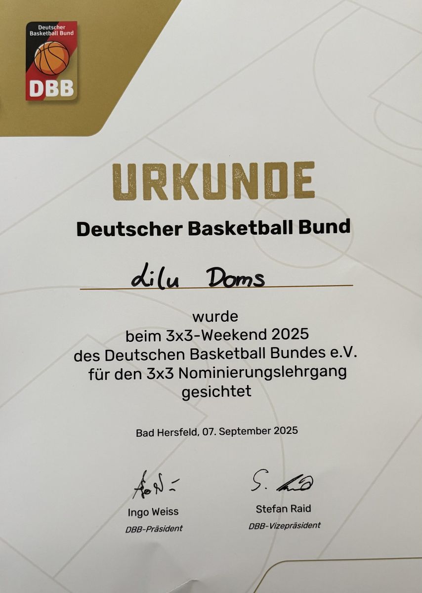 Bei bestem Wetter trafen sich Anfang September die Auswahlteams der Landesverbände im Kampf um die 3x3 U17 Meisterschaft in Bad Hersfeld. Im Team Niedersachsen mit dabei: Lilu Doms vom OTB. Und auch wenn es für die Nordlichter nicht zu einem Platz auf dem Podest reichte, strahlte die Oldenburgerin am Ende trotzdem: Denn sie wurde von der Bundestrainerin für den 3x3 Nominierungslehrgang Anfang kommenden Jahres nominiert. Dort kämpft sie zusammen mit 18 Spielerinnen um einen Platz im endgültigen 8er Kader. Das ist bereits jetzt ein toller Erfolg! Und wer weiß…
