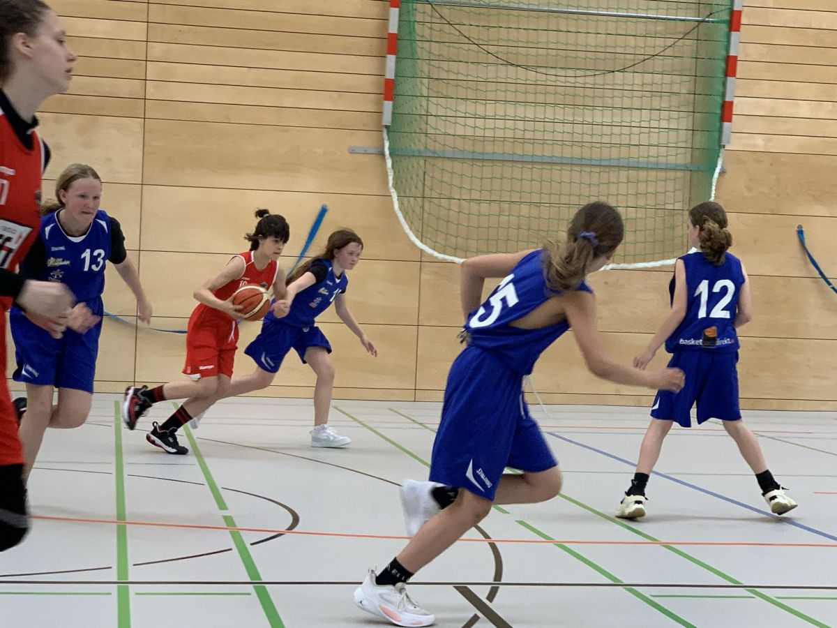 Angeführt von der schier unbeugsamen Line setzte man den Gegner so unter Druck, dass ein Ball nach dem anderen erobert werden konnte. Im Angriff kombinierten vor allem Line und Sophie immer besser, sodass ein Korb nach dem anderen fiel. So stand es vor den letzten 5 Minuten plötzlich nur noch 30:35. Und jetzt gab es kein Halten mehr. Gegen die überragende OTB - Defense gelang Braunschweig kein Korb mehr bis zum Schluss und 30 Sekunden vor dem Ende ging der OTB mit 36:35 in Führung, was dann auch das Endergebnis bedeutete. Mit diesem schier unfassbaren 19:2 Lauf war der zweite Tabellenplatz in der Gruppe sicher und man stand im kleinen Finale. Was für ein toller Erfolg. Doch es gab keine Zeit zu feiern.