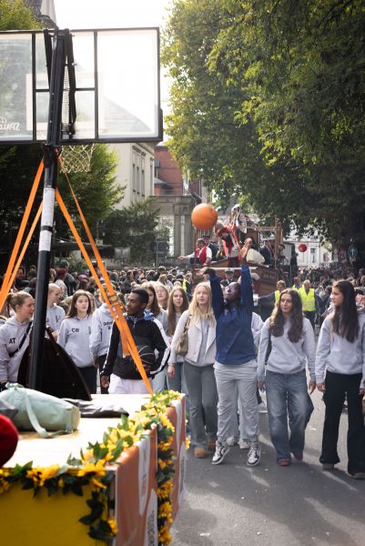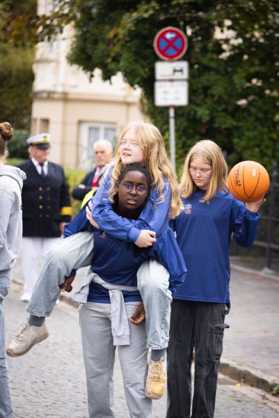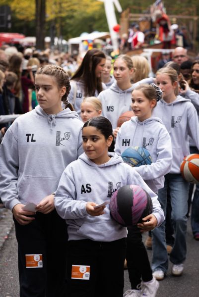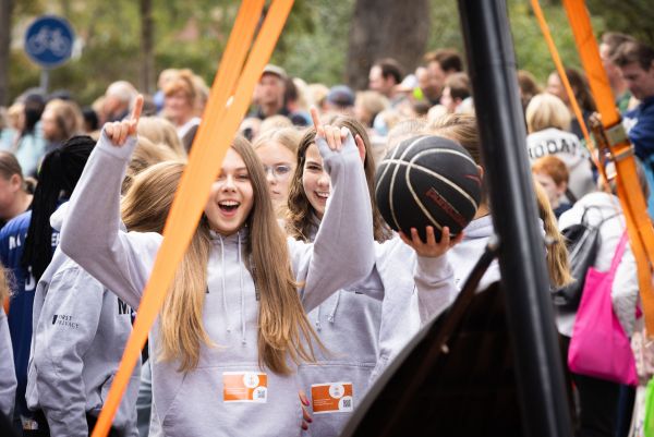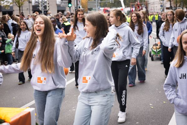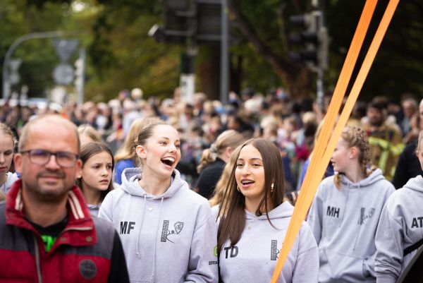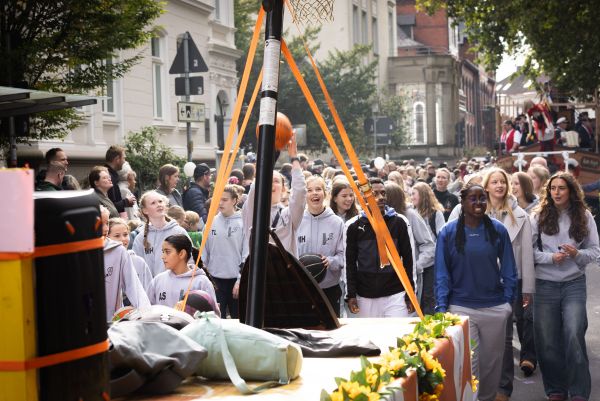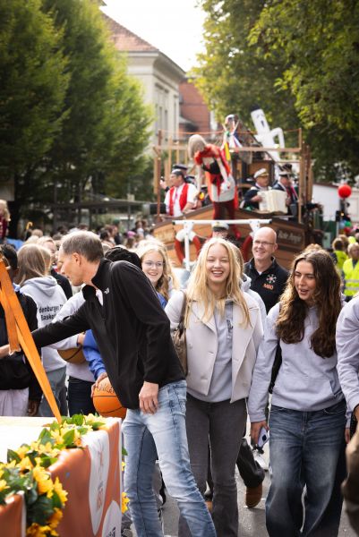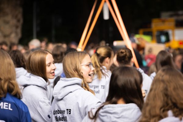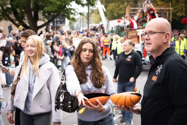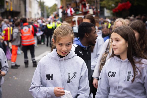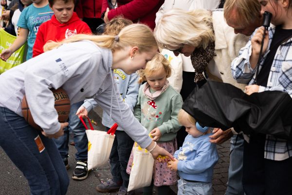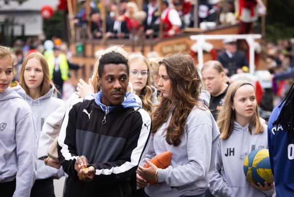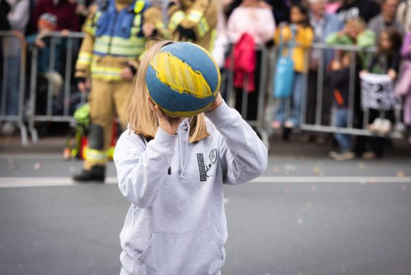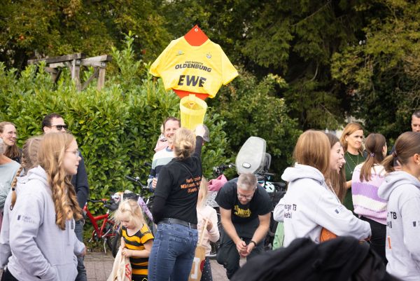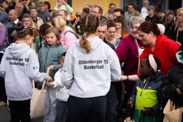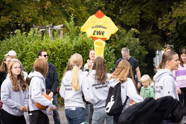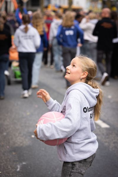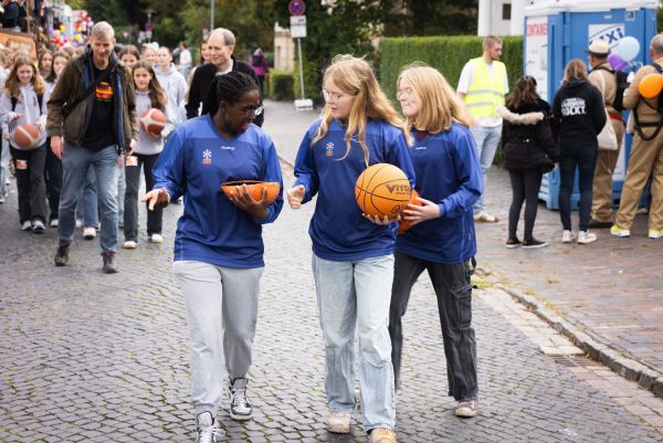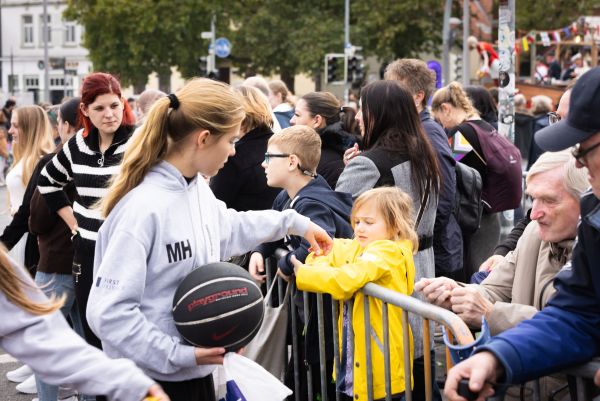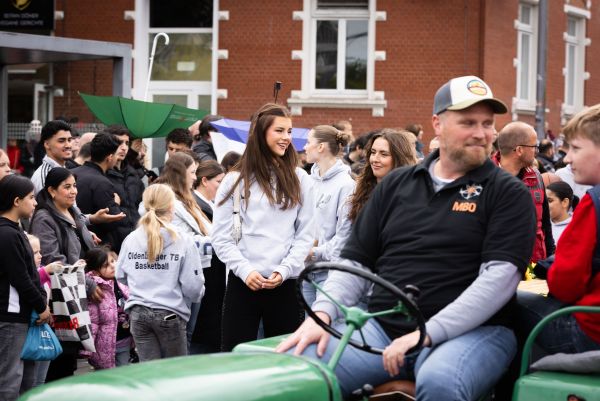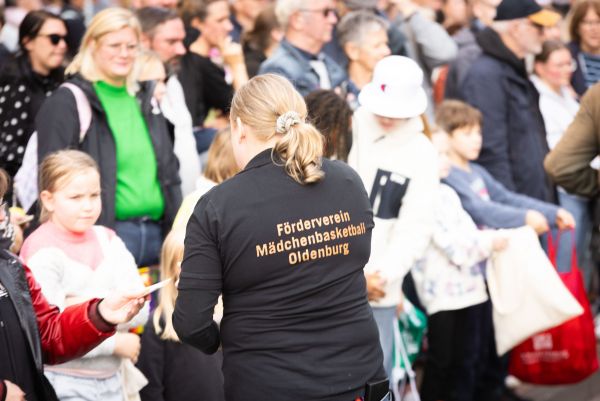 Die Voraussetzungen konnten fast nicht besser sein - nicht zu warm, nicht zu kalt und ab und zu schaute auch mal die Sonne raus. Und so versammelten sich rund 30 Basketballspielerinnen hinter dem festlich geschmückten Anhänger samt Korbanlage. Dieser wurde gezogen von einem historischen Traktor der Marke Holder B12 Baujahr 1961, mit dem sich Jan-Bernd Heitmann bereits am frühen Nachmittag auf den Weg zu seiner Startposition in der Bismarckstraße gemacht hatte. Später reihte man sich dann von dort aus in den laufenden Festumzug ein. Thematisch durchaus passend hinter der großen Gruppe des OTB, den EWE Baskets und dem Schulbus des Fördervereins der Cäcilienschule, ging es vorbei am Staatstheater und dem Lappan, über den Pferdemarkt Richtung Donnerschwee, um schließlich an der Ehrentribüne einen letzten kräftigen Applaus zu genießen. Unterwegs gab es nur strahlende Gesichter und natürlich auch den ein oder anderen erfolgreichen Korbleger. Die Menge der vorab besorgten Kamellen passte perfekt - doch der eigentliche Renner waren die Lippenpflegestifte im MBO-Design, die von den Zuschauerinnen