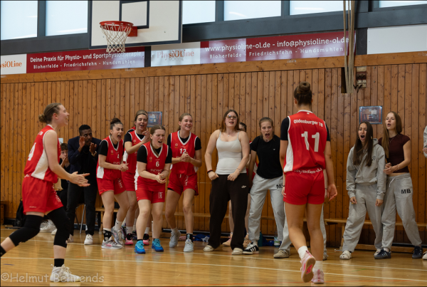 Doch erst einmal mussten die Nordwestgirls gegen die Übermannschaft aus Halle antreten. Mit den Eindrücken vom Vortag im Kopf graute vielen Zuschauern auf der Tribüne regelrecht davor. Doch die Nordwestgirls hatten über Nacht nicht nur frische Kräfte gesammelt, sondern auch ihre Nervosität abgelegt und legten wie verwandelt gegen Halle los. Angeführt von Mia Fittje, der im ersten Abschnitt bereits 11 Punkte gelangen, ging man mit einer 20:19 Führung in die Viertelpause. Die Zuschauer rieben sich die Augen. Ja was war das denn? Nun standen die Coaches Macklly Stein und Moritz Poser vor einem Dilemma. Einerseits galt es, Kräfte für das Spiel gegen Scala zu schonen, andererseits schien ein Sieg gegen Halle möglich. Man versuchte es hinten also mit einer kraftschonenden Raumverteidigung. Doch Halle bewegte den Ball geschickt um die Zone herum und schoß sich so lange auf die Oldenburger Körbe ein, bis die Dreier einer nach dem anderen durch die Reuse fielen. Am Ende des zweiten Viertels standen bereits 8 Dreier für Halle auf dem elektronischen Anschreibebogen. Und damit führte Halle 42:32. Der Sieg rückte immer mehr in weite Ferne und so zog man die Reißleine und schonte wichtige Spielerinnen für das große Finale gegen Scala. Am Ende stand ein 65:44 Erfolg für Halle an der Anzeigetafel. Nach einer kurzen Mittagspause gewann Halle noch schnell 54:49 gegen Girlspower Hamburg, wobei der Turniersieger fast nur die zweiten Fünf zum Einsatz brachte. War die Halle bei diesem Spiel ziemlich leer, so füllte sie sich urplötzlich wieder gegen 16.00h. Es lag viel Spannung in der Luft. Hatten die Nordwestgirls denn eine Chance gegen diese blitzschnelle Truppe aus Hamburg? Lilu Doms schien als erste diese Frage beantworten zu wollen und streute sofort drei blitzsaubere Körbe zur 6:0 Führung ein. Erst nach dem 9:0 durch Fittje und Sina Onken konnte Hamburg in der 5. Minute durch ihre Beste, Aufbauspielerin Podoliako, die ersten Punkte erzielen. Die bärenstarke Onken stellte dann durch fünf Punkte in Folge den 18:9 Viertelendstand her. Die Halle tobte. Doch das war erst der Appetizer: die Nordwestgirls waren noch lange nicht satt und eine Spielerin nach der anderen sprang nun auf den fahrenden Zug auf: unter dem Korb räumte Josephine Paulsen mächtig auf, Paula Thüner brachte viel Energie und die junge Morlin Bock glänzte mit vielen guten Entscheidungen. Hinten ließ man Hamburg erst gar nicht zum befürchteten Tempospiel kommen und vorne fielen nun auch die Dreier. 6 Stück waren es bereits zur Halbzeit. Hamburg war so bedient, dass es nun auch nicht mehr so schnell von Angriff auf Verteidigung umschaltete. So ermöglichte man dem OTB auch noch leichte Schnellangriffe. Nach 21 Minuten war der Vorsprung unter dem frenetischen Applaus der Fans auf sagenhafte 26 Punkte angewachsen (48:22). Und plötzlich, von einem Moment auf den anderen, war es so, als hätte jemand den Stecker aus der Dose gezogen. Beide Teams taten nur noch das Nötigste und so plätscherte das Spiel dem 57:42 Sieg für die Nordwestgirls entgegen. Während kurz darauf draußen auf dem Parkplatz bittere Hamburger Tränen flossen, gab es in der Halle nur noch Jubel und Applaus für die Mädchen und deren Trainer, die es mit unendlich viel Einsatz geschafft haben, eine so bärenstarke Mannschaft zu formen.