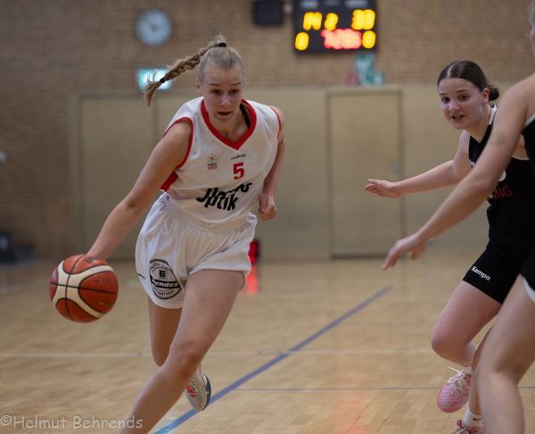 Wie gut sind die OTB Damen in der 2. Regionalliga wirklich? Bisher steht das Team ungeschlagen mit 5 Siegen an der Tabellenspitze. Schaut man jedoch auf die Tabelle, sieht man, dass sich vier der 5 Gegner inzwischen auf den letzten 4 Tabellenplätzen eingefunden haben. Nur der BTB macht da erfreulicherweise als Tabellendritter eine Ausnahme. Auf jeden Fall kommen in den nächsten Wochen mit Vörden, TK Hannover und OSC Osnabrück drei Spiele gegen "dicke Brocken". Mit dem TV Vörden kommt der unangenehmste Gegner kommenden Samstag, 14.30h in die Haarenuferhalle. Im letzten Jahr gingen beide Spiele gegen Vörden verloren. Trainerfuchs Horst Maronn hat über Jahre hinweg seinen eigenen Spielstil entwickelt und diesen mit einer ordentlichen Portion Härte unterlegt. So wie von Vörden wurde der OTB noch die durch die Halle geschoben. Dabei sind die Vördenerinnen so geschickt wie kein zweites Team in der Liga. Denn die Pfeifen der Schiedsrichter blieben meistens stumm. So lagen im ersten Spiel die Oldenburger Spielerinnen reihenweise am Boden und wußten gar nicht wie ihnen geschah. Willkommen in der Regionalliga. In der Vorbereitung für das Spiel am kommenden Samstag wird die Körperlichkeit eine große Rolle spielen. Man möchte sich nicht wieder so einfach vermöbeln lassen. Aber das alleine wird nicht reichen. Vörden agiert sehr trickreich und ist auch spielerisch und wurftechnisch eines der stärksten Teams der Liga. Bei der Betrachtung der Tabelle (Rang 5 mit 2 Siegen und zwei Unentschieden) wird dies nicht deutlich sichtbar. Vörden hat gegen den BTB und Stade denkbare knappe Niederlagen erzielt. Eine Schwächung gegenüber der Vorsaison dürfte sein, dass mit Malea Sprehe (auf den Bildern die Nr. 14) eine der Top Spielerinnen in diesem Sommer zum OTB gewechselt ist. Malea studiert an der Uni Oldenburg und ihr wurde die Fahrerei zwischen Vörden und Oldenburg auf Dauer einfach zuviel. Dem Duell gegen ihren Heimatverein, bei dem auch noch ihre Schwester Pia spielt, fiebert sie mit Hochspannung entgegen.
