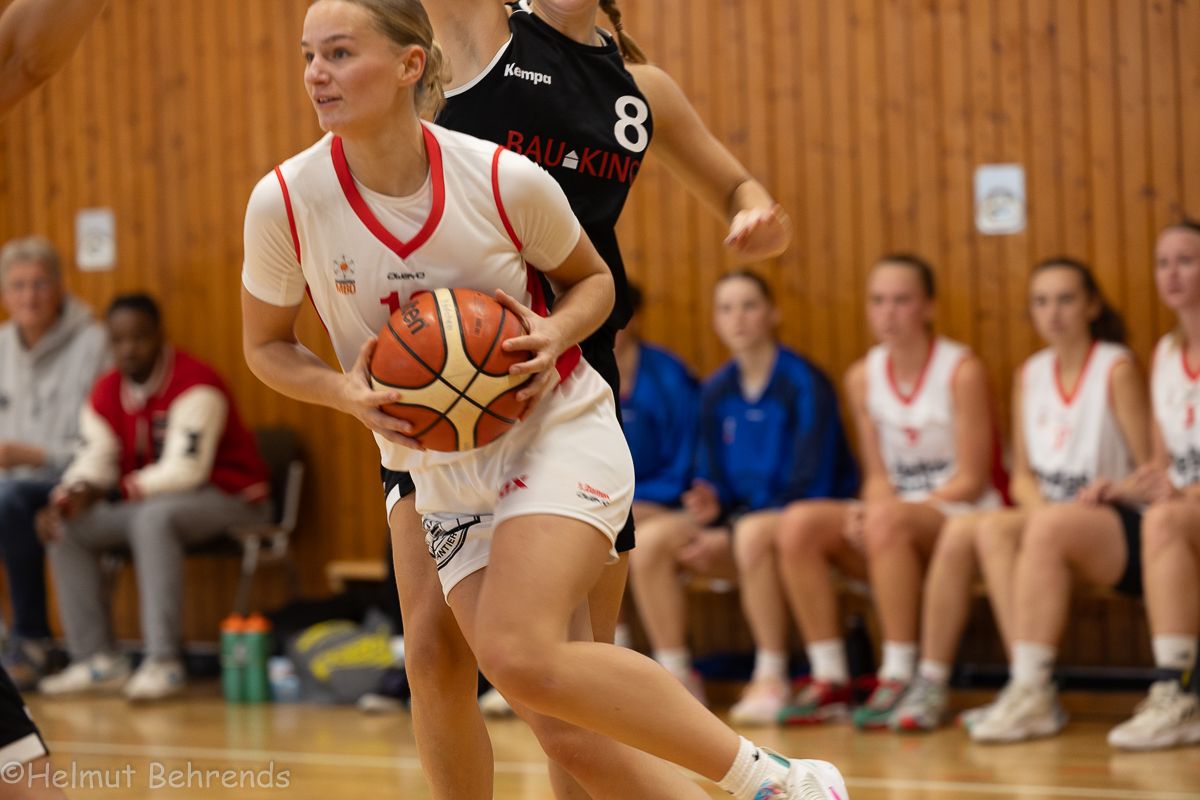 Wie gut sind die OTB Damen in der 2. Regionalliga wirklich? Bisher steht das Team ungeschlagen mit 5 Siegen an der Tabellenspitze. Schaut man jedoch auf die Tabelle, sieht man, dass sich vier der 5 Gegner inzwischen auf den letzten 4 Tabellenplätzen eingefunden haben. Nur der BTB macht da erfreulicherweise als Tabellendritter eine Ausnahme. Auf jeden Fall kommen in den nächsten Wochen mit Vörden, TK Hannover und OSC Osnabrück drei Spiele gegen "dicke Brocken". Mit dem TV Vörden kommt der unangenehmste Gegner kommenden Samstag, 14.30h in die Haarenuferhalle. Im letzten Jahr gingen beide Spiele gegen Vörden verloren. Trainerfuchs Horst Maronn hat über Jahre hinweg seinen eigenen Spielstil entwickelt und diesen mit einer ordentlichen Portion Härte unterlegt. So wie von Vörden wurde der OTB noch die durch die Halle geschoben. Dabei sind die Vördenerinnen so geschickt wie kein zweites Team in der Liga. Denn die Pfeifen der Schiedsrichter blieben meistens stumm. So lagen im ersten Spiel die Oldenburger Spielerinnen reihenweise am Boden und wußten gar nicht wie ihnen geschah. Willkommen in der Regionalliga. In der Vorbereitung für das Spiel am kommenden Samstag wird die Körperlichkeit eine große Rolle spielen. Man möchte sich nicht wieder so einfach vermöbeln lassen. Aber das alleine wird nicht reichen. Vörden agiert sehr trickreich und ist auch spielerisch und wurftechnisch eines der stärksten Teams der Liga. Bei der Betrachtung der Tabelle (Rang 5 mit 2 Siegen und zwei Unentschieden) wird dies nicht deutlich sichtbar. Vörden hat gegen den BTB und Stade denkbare knappe Niederlagen erzielt. Eine Schwächung gegenüber der Vorsaison dürfte sein, dass mit Malea Sprehe (auf den Bildern die Nr. 14) eine der Top Spielerinnen in diesem Sommer zum OTB gewechselt ist. Malea studiert an der Uni Oldenburg und ihr wurde die Fahrerei zwischen Vörden und Oldenburg auf Dauer einfach zuviel. Dem Duell gegen ihren Heimatverein, bei dem auch noch ihre Schwester Pia spielt, fiebert sie mit Hochspannung entgegen.