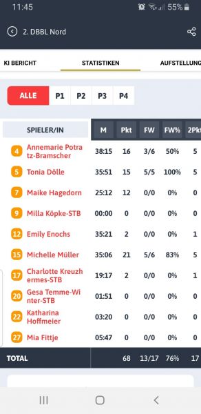 Mit neun Spielerinnen waren die U12 Mädchen nach Bremerhaven angereist, um sich mit den bis dahin ebenfalls ungeschlagenen Eisbärinnen zu messen. Dabei wollte man auch auch den jüngeren Spielerinnen die Möglichkeit geben, Spielerfahrung zu sammeln. In der ersten Halbzeit entwickelte sich eine spannende Partie in der die Führung immer hin- und herschwappte. So hieß es nach den Achteln eins bis vier 9:6, 12:19, 23:23 und 27:33. In der zweiten Halbzeit kam der OTB Zug richtig ins Rollen. Hinten klappte die Zuordnung zu den Gegenspielerinnen immer besser und vorne lief man einen Schnellangriff nach dem anderen. Während in der Defense alle ordentlich ackerten und die Räume dicht machten, prägten im Angriff Lale, Arishma und Tea das Spiel und zeigten, wie gut sie schon zusammenspielen können. Mit dem 18:0 Lauf im 6. Achtel war die Partie dann beim 32:61 Zwischenstand entschieden. Schön war, dass alle Spielerinnen ordentlich Spielerfahrung sammeln konnten und so gab es zufriedene Gesichter allerseits.