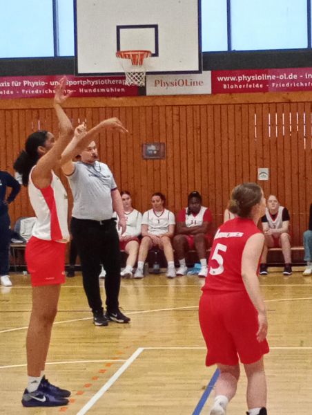 Direkt nach der Pause wurde es durch ein And-One noch enger (26:23) doch anschließend ließen die Oldenburgerinnen mit einem tollen 9:0 Lauf keine weitere Dramatik aufkommen. Mit 43:32 ging es schließlich ins letzte Viertel, in dem der Vorsprung weiter anwuchs (53:34). Für Coach Maurice Grund genug den Spielerinnen von der Bank Tida Bonk, Lucy und Emily Riemel und Eva Stroot auch in diesem Viertel ausreichend Spielzeit zu geben. Die Partie endete schließlich 71:36. Und mit ein wenig Glück und einem Sieg beim Tabellenführer BG Biba Achim am kommenden Sonntag könnte die Meisterschaft doch noch spannend werden.