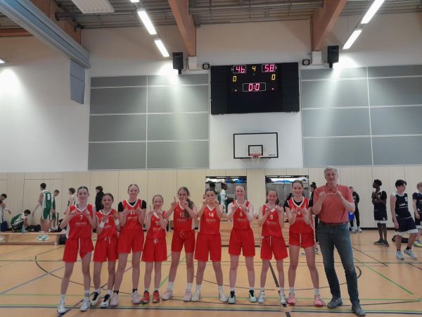Dank eines 46:58 (11:12, 20:29, 32:44) Auswärtserfolgs beim Tabellennachbarn TK Hannover feierten die U14 Mädchen ausgiebig den 5.
