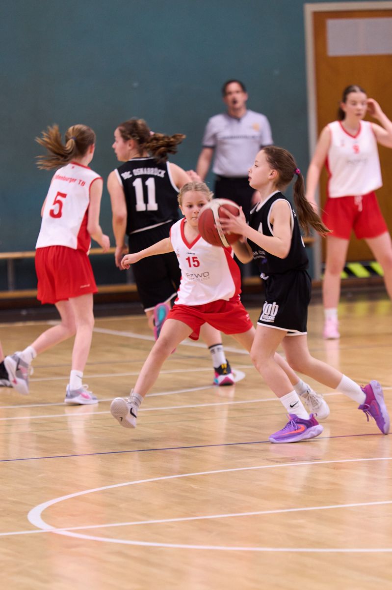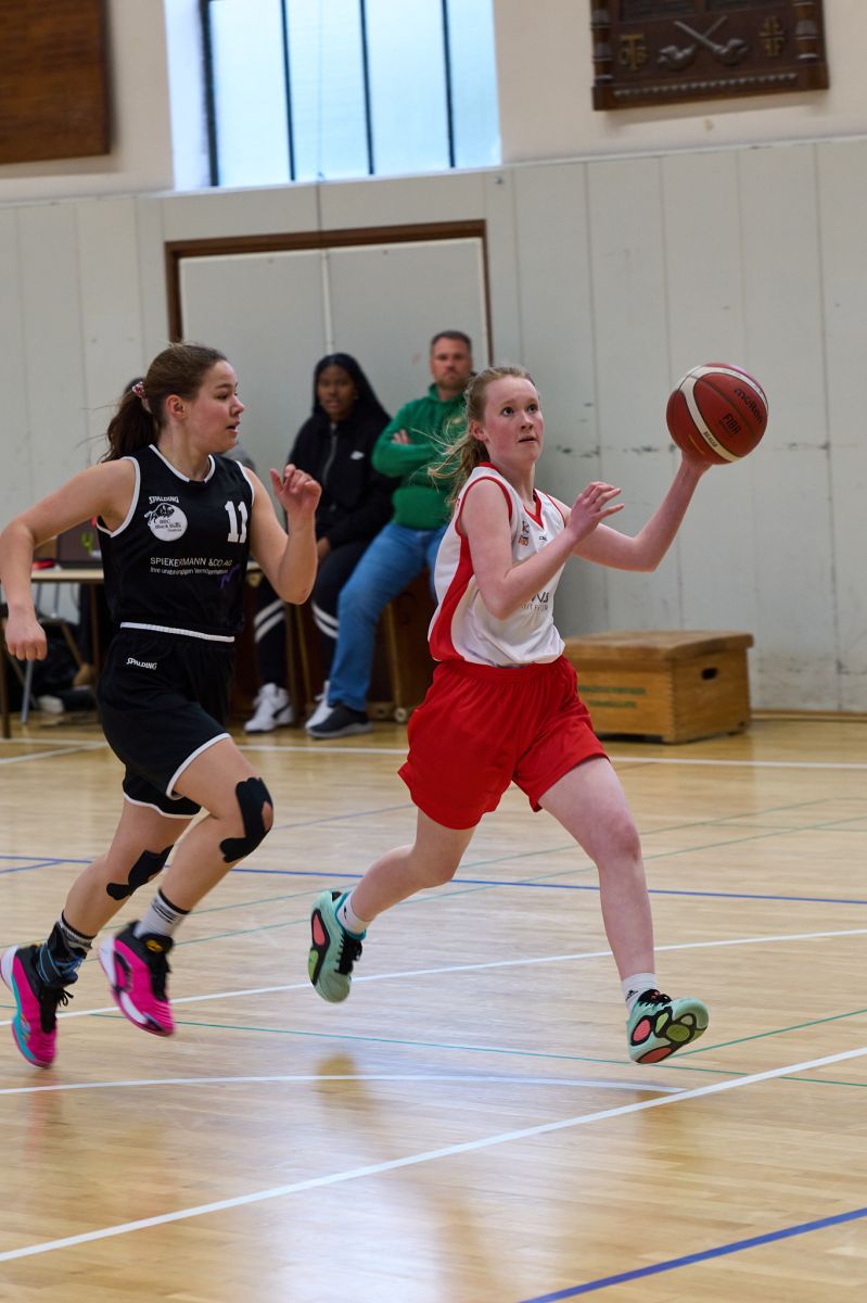 Ein starkes Viertel reicht leider nicht. Diese Erfahrung mussten die U14 Mädchen bei der 49:70 (11:17, 20:36, 42:45) Niederlage gegen den Tabellennachbarn vom BBC Osnabrück machen. Die teilweise sehr groß gewachsenen Spielerinnen des Gegners ließen von Anfang an das Schlimmste befürchten. Bis zum 6:6 (4.) konnte man mithalten, doch dann schlich sich der BBC langsam davon. Am Viertelende hieß es 11:17. Es war einfach zu schwer, an Rebounds zu kommen und vor allem am offensiven Brett abzuschließen. So liefen viele erfolgversprechende Angriffe ins Leere, weil man nicht gegen die großen BBCerinnen abschließen konnte. Im zweiten Viertel machte sich dann eine leichte Verzagtheit breit, die am Ende den Gegner als klaren Gewinner sah (9:19). In der Halbzeit raufte man sich wieder zusammen. Der Schlüssel war die Defense. Wenn es gelang, dem Gegner den Weg zum Korb zuzumachen, konnte der seine Größenvorteile nicht mehr ausspielen und vorne wollte man durch höheres Tempo mehr Freiräume schaffen. Und das gelang. Und wie! In den ersten sieben Minuten hatte man bereits 5 Punkte aufgeholt 32:43 (27.) und dann erspielte man tatsächlich noch ein 10:0 Lauf zum 42:43. Was für eine tolle Vorstellung. Am Viertelende hieß es 42:45. Und nach dem Grund zur Freude kam sofort die kalte Dusche. Die Aufholjagd hatte zuviel Kraft gekostet. Hinten war es nun plötzlich ein Leichtes für die Gegnerinnen zum Korb zu kommen und vorne versuchte man es mit Weitwürfen. Das kostete zwar weniger Kraft, brachte aber keinen Erfolg. So gelang dem BBC seinerseits ein 19:0 Lauf in sage und schreibe fünf Minuten und es stand 42:64. Osnabrück hatte am Ende mit 49:70 verdient gewonnen.